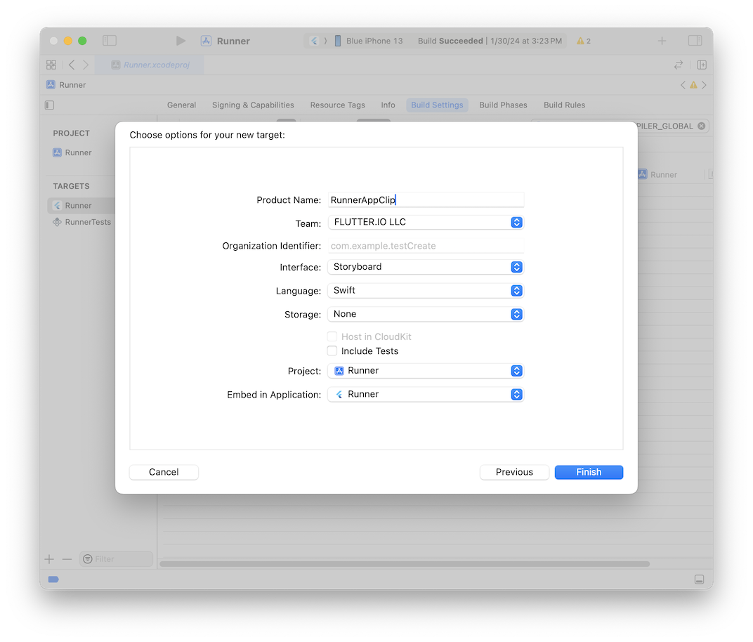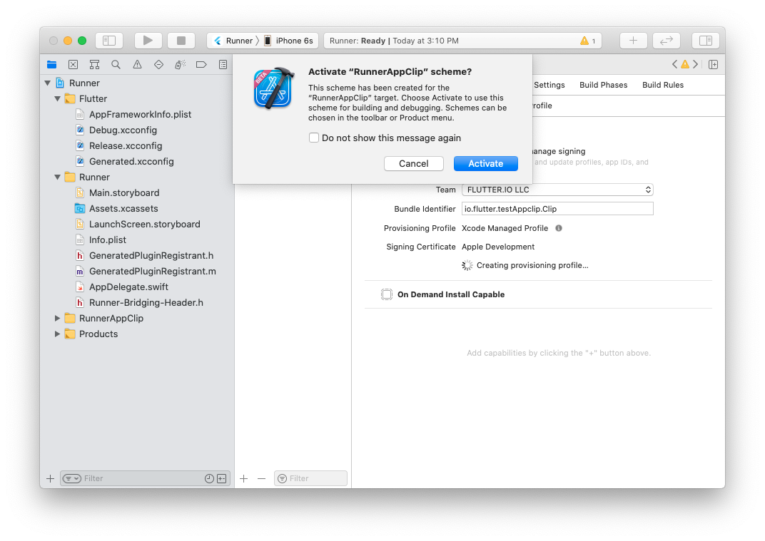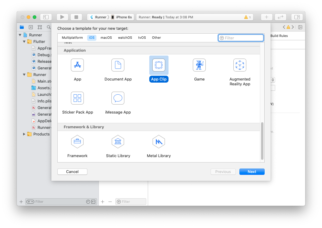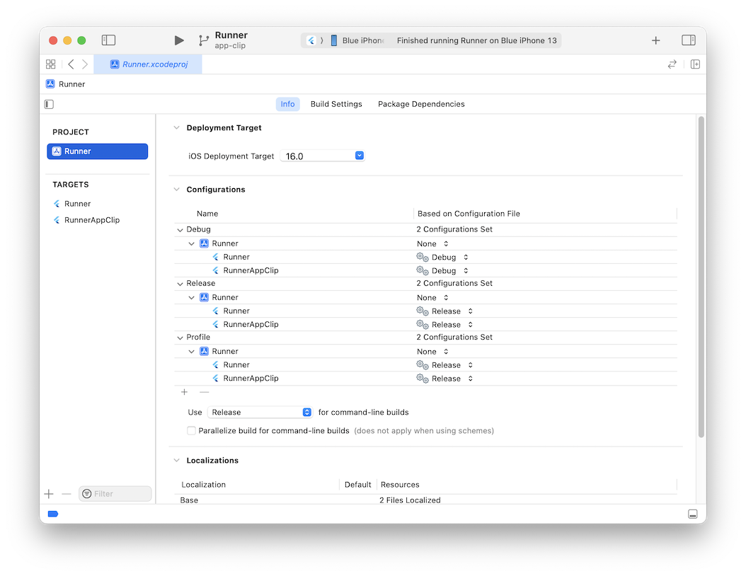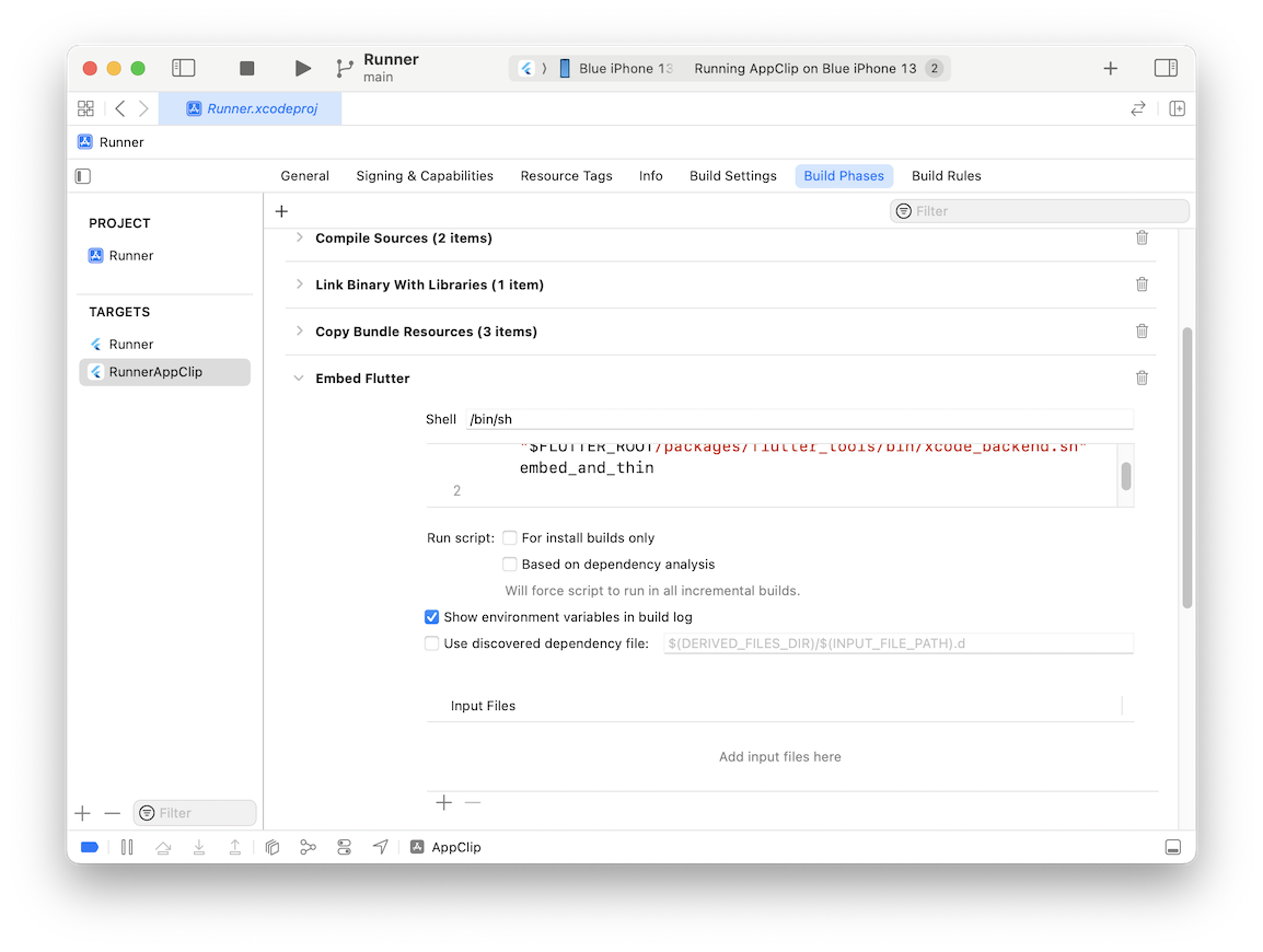這確保了在執行 App Clip 目標時,您的 Flutter Dart 程式碼會被編譯。
